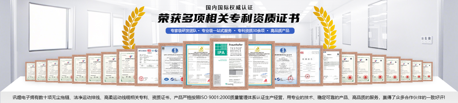 蘇州訊煜電子有限公司深耕線(xiàn)纜與線(xiàn)束領(lǐng)域二十余年,專(zhuān)注于無(wú)塵拖鏈、潔凈高柔運(yùn)動(dòng)排線(xiàn)、真空線(xiàn)纜、潔凈線(xiàn)纜、高柔運(yùn)動(dòng)線(xiàn)纜及智能線(xiàn)束的研發(fā)與生產(chǎn),提供從設(shè)計(jì)開(kāi)發(fā)到量產(chǎn)交付的全流程服務(wù)。公司產(chǎn)品通過(guò)ISO 9001:2000質(zhì)量管理體系認(rèn)證,并符合RoHS、REACH、CE等國(guó)際標(biāo)準(zhǔn),核心性能指標(biāo)如潔凈度(IPA Class1)、折彎壽命(達(dá)數(shù)千萬(wàn)次)及信號(hào)穩(wěn)定性均達(dá)到了很高的標(biāo)準(zhǔn)。